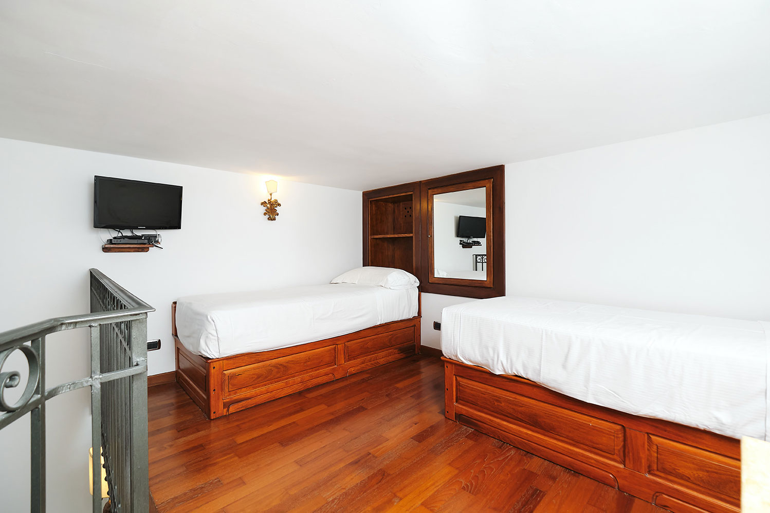 La Camera Comfort Tripla è pensata per offrire un soggiorno elegante e funzionale, ideale per famiglie con bambini piccoli o gruppi di tre adulti. Caratterizzata da ambienti caldi e arredamenti in stile classico, la camera dispone di un comodo letto matrimoniale e ulteriori sistemazioni in grado di accogliere fino a quattro ospiti.