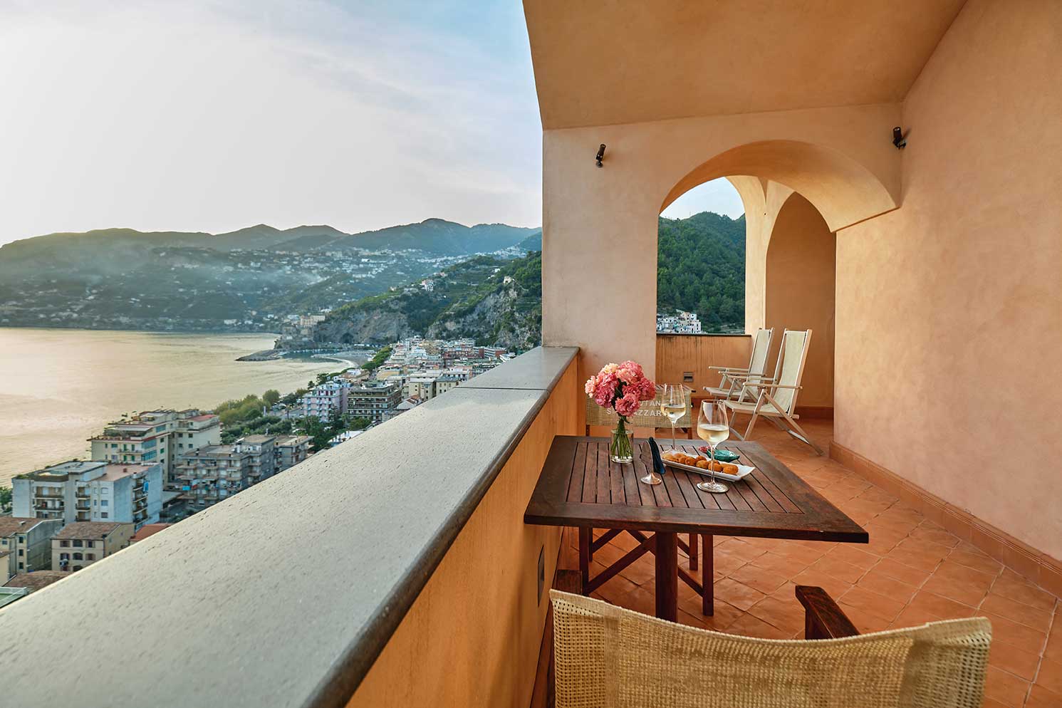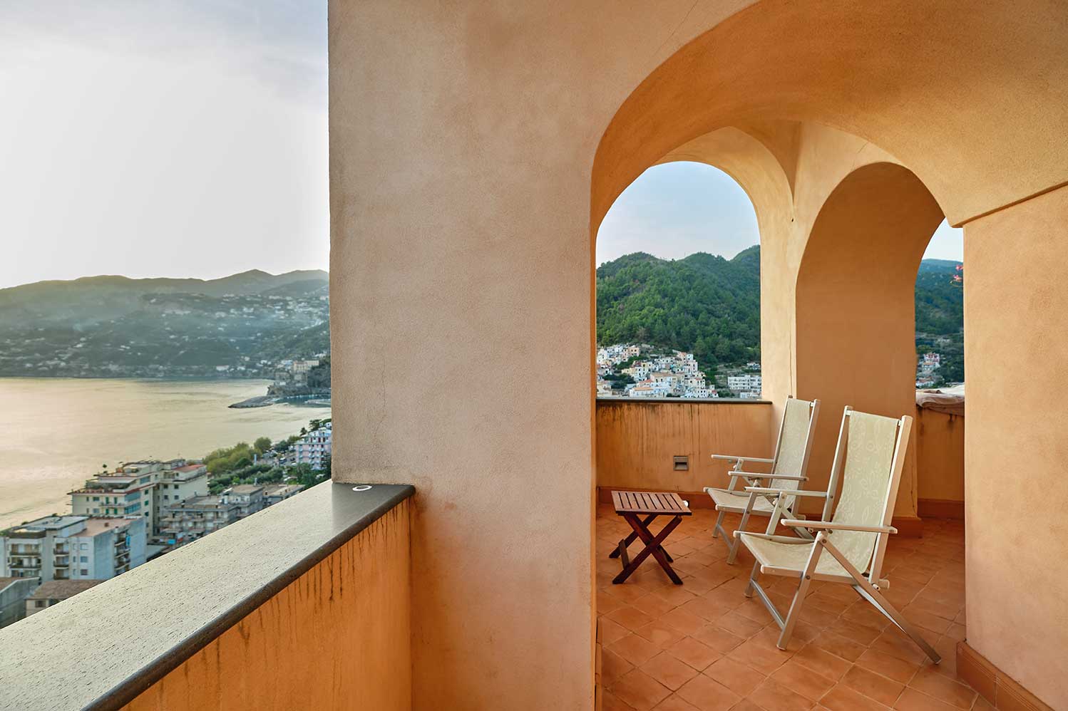 Ampie e confortevoli, ogni camera Deluxe ha un ampio terrazzo privato dove potersi rilassare e ammirare l’incantevole panorama sulla baia di Maiori. Situate al secondo e al terzo piano dell’hotel, dotate di bagno privato rifinito in ceramica vietrese, le camere Deluxe saranno il vostro spazio esclusivo per soggiornare in tutta privacy e tranquillità.